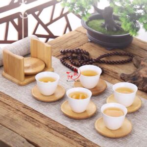 Những chiếc đế lót ly làm bằng tre tự nhiên rất sang trọng và trang nhã, để tạo ra nét duyên dáng tự nhiên trở về với thiên nhiên, góp phần tô điểm cho buổi trà đạo.
